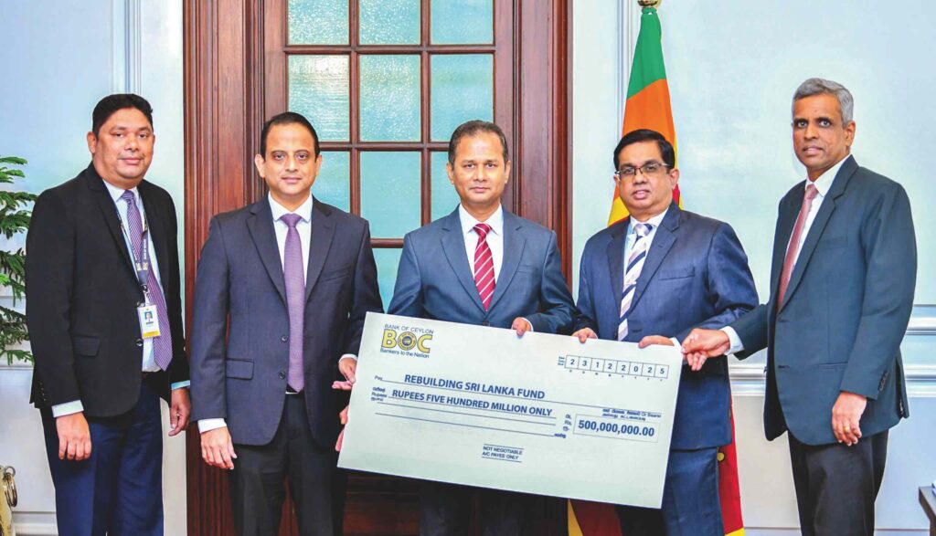 Bank of Ceylon (BOC) has contributed 500 million rupees to the Government’s “Rebuilding Sri Lanka” Fund to support communities affected by Cyclone Ditwah, reaffirming its commitment to national recovery efforts. The cyclone that struck Sri Lanka in late November 2025 during the northeast monsoon caused widespread devastation, affecting over two million people and damaging homes, infrastructure, livelihoods, and essential services.
