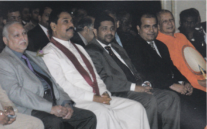 L–R: DHS Jayawardena, Prime Minister Mahinda Rajapaksa, Deputy Mayor Azath Salley, Mathi K Parthipan, and Ven Galaboda Gnanissara Thero