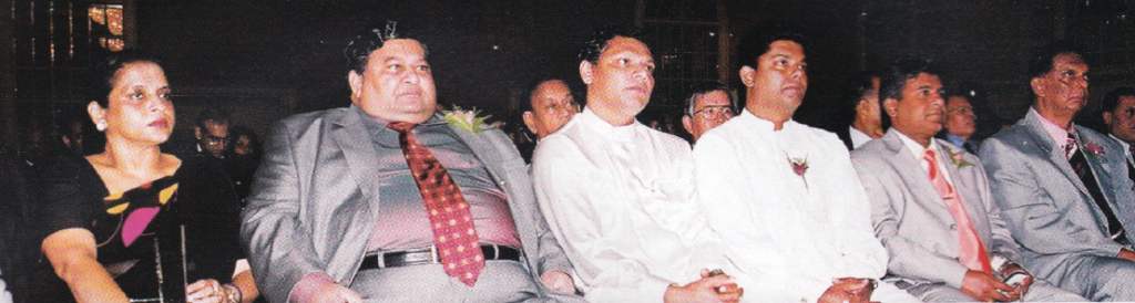 Mr and Mrs Manilal Fernando, MP Dayasiri Jayasekera, MP Gayantha Karunathileke, MP Wijedasa Rajapaksa, and MP John Ameratunga