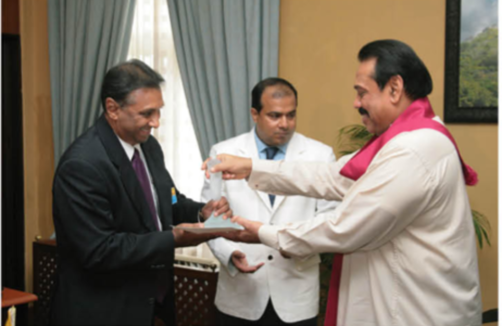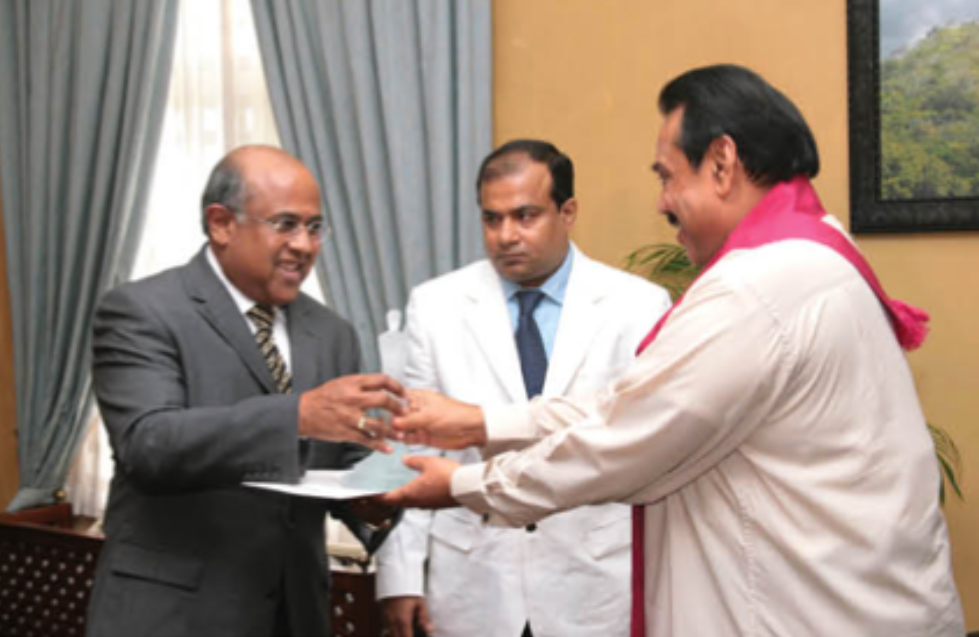 Manilal Fernando, Chairman, Holcim Sri Lanka with President Rajapaksa