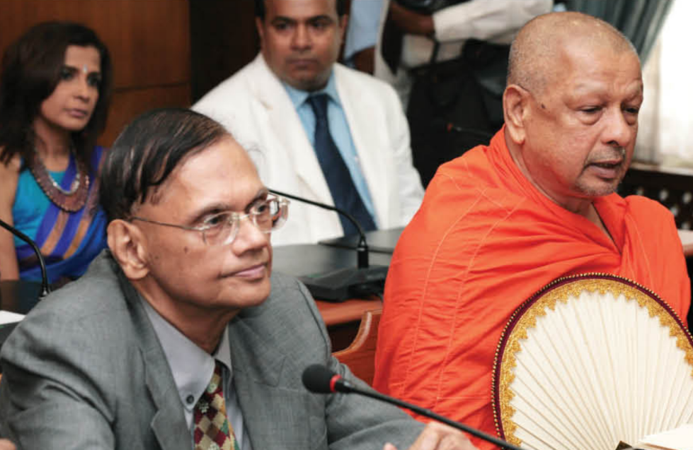 Prof G L Pieris, Minister, Constitutional Affairs and the Venerable Thero