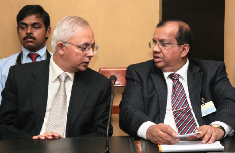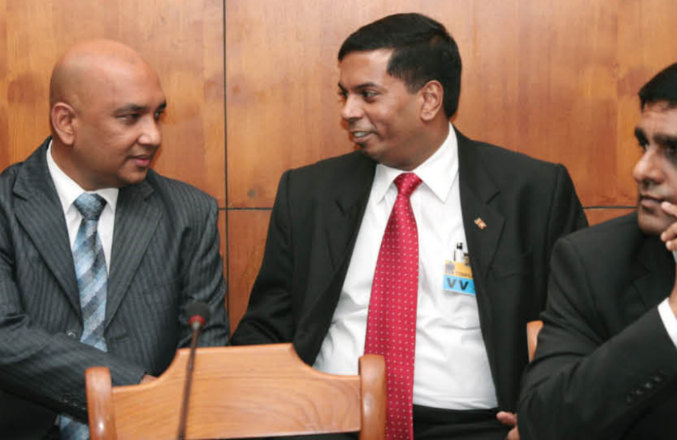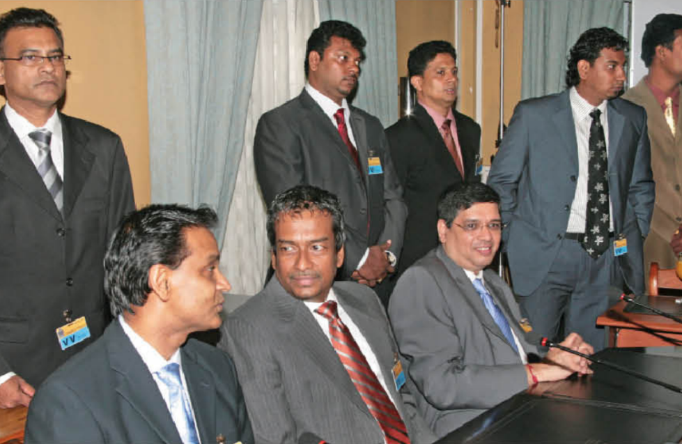 In the foreground: (L-R) Suren Rajakarier, Partner, KPMG Ford Rhodes Thornton & Cpmpany; Shanker Somasunderam, Deputy Chairman, Brown & Co. and Nimesh Udeshi, Directors of Siedles