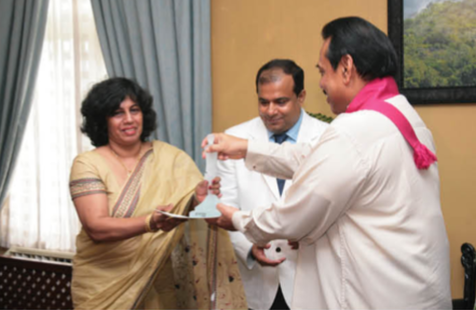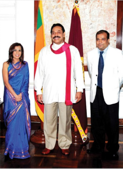 (L-R)Glenda Parthipan, Managing Director, Emphasis; His Excellency President Mahinda Rajapaksa and Mathi K Parthipan,