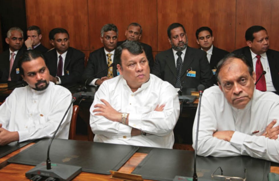 (L-R) Wimal Weerawansa, Mahidha Samarasinghe; Minister of Disaster Management and Human Rights and Karu Jayasuriya, Minister of Public Administration and Home Affairs