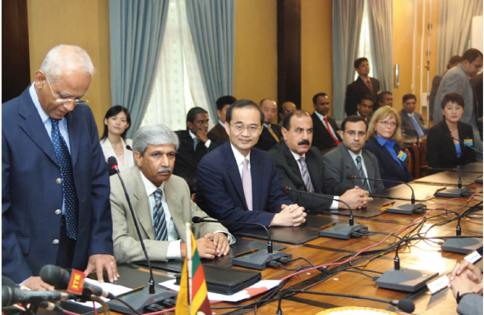 (L-R) Lalith Weerutunga, Shahzad A Choudhury: Ye Dabo; Yassir Kadhim Chasat, Charge of Affairs, Embassy of req: Mohamed Tasa Al Owolfan, Change d’ Affairs, Embassy of the State of Kiowait, Rebecca Cohn, Mission Director, US Aid and Patricia You Moi Chia, Secretory General The Colombo Plan Secretariat