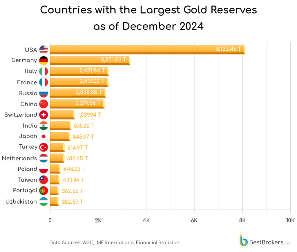 Despite already having substantial gold reserves, China continued to buy more, acquiring 44.17 tonnes in 2024.