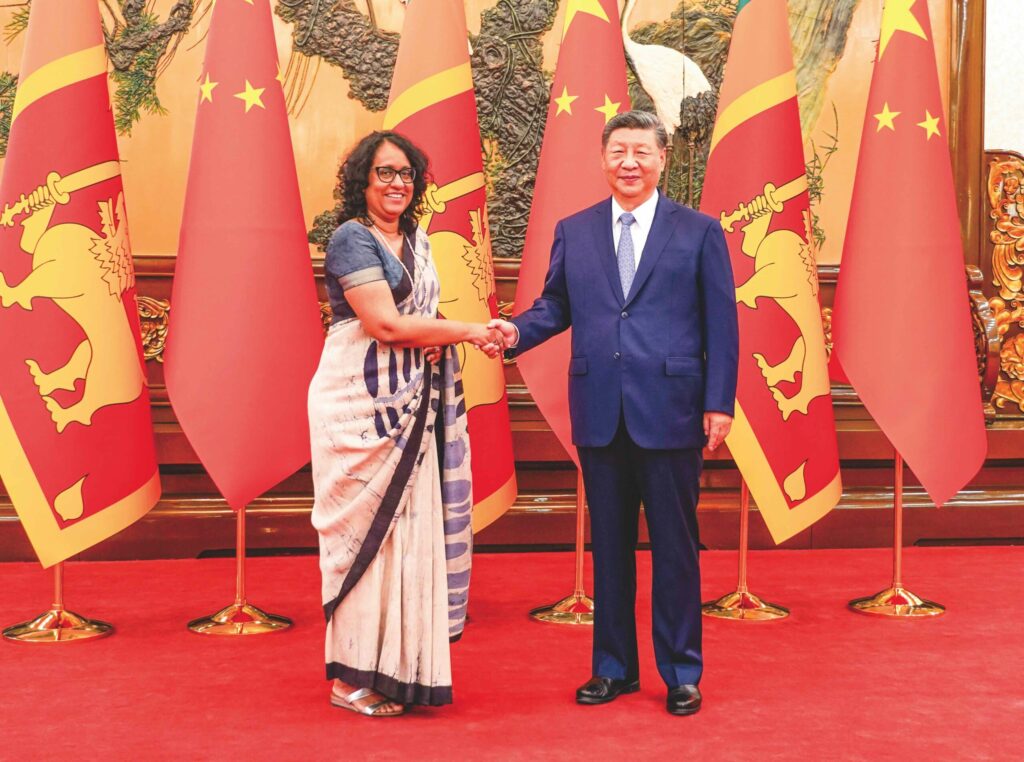 Prime Minister Dr Harini Amarasuriya met with Chinese President Xi to discuss strengthening bilateral relations and advancing cooperation in women’s development and education.