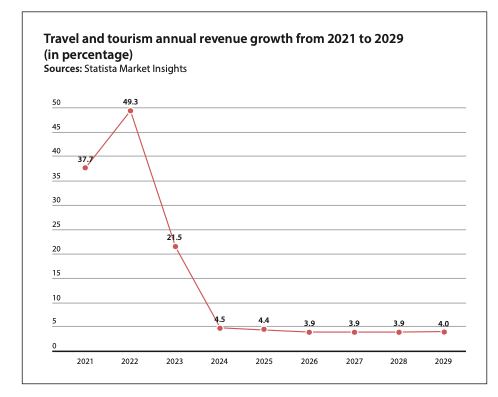 According to a Statista Market Insights survey, global travel and tourism revenue is expected to grow by just 4.4 percent in 2025, reaching USD 955 billion. That is 0.1 percent less compared to the growth rate in 2024 and the lowest annual increase in five years.